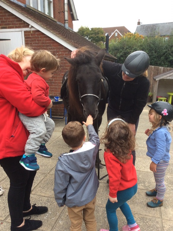The most exciting part of the morning was Alex (Martha’s Mummy) bringing Martha’s horse to preschool. The children asked questions about what he ate, and also helped to feed him apples and carrots. When we got back inside we talked about how many legs he had and what colour he was.