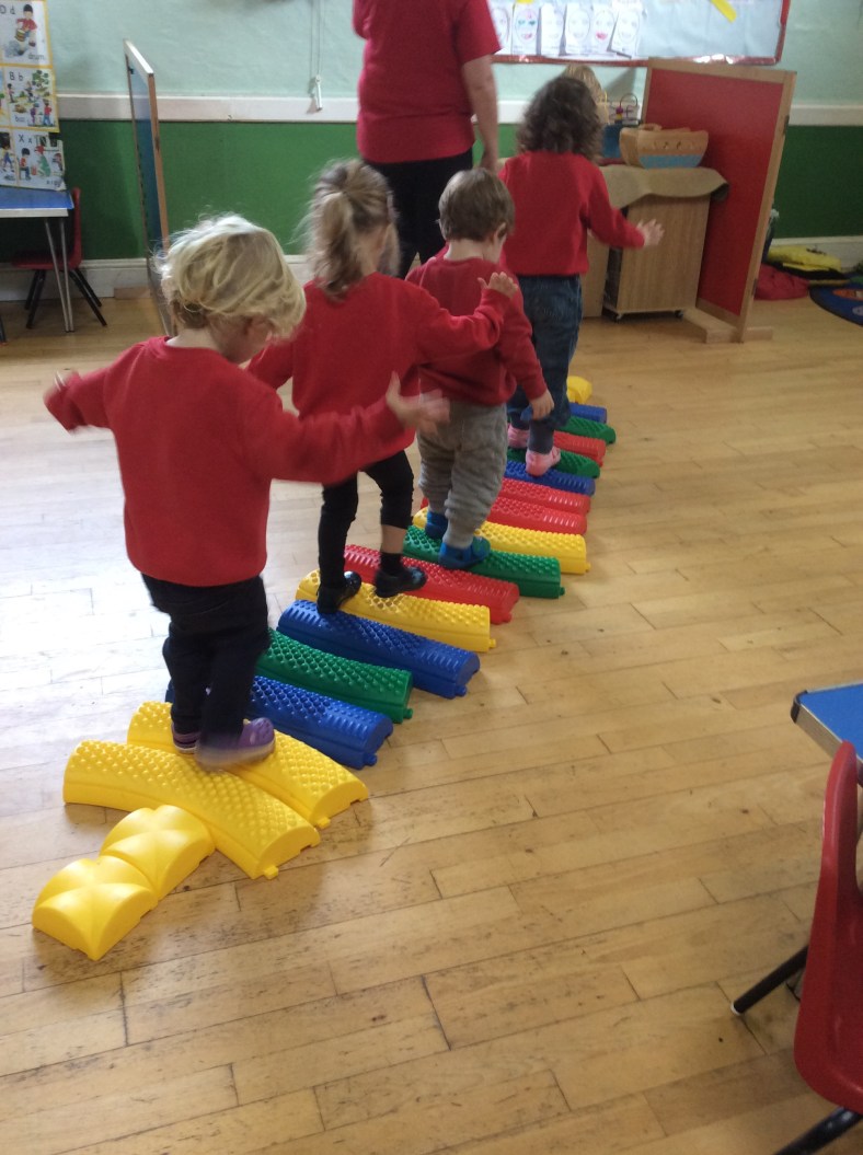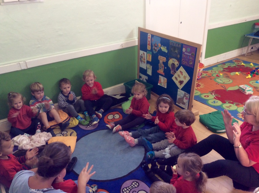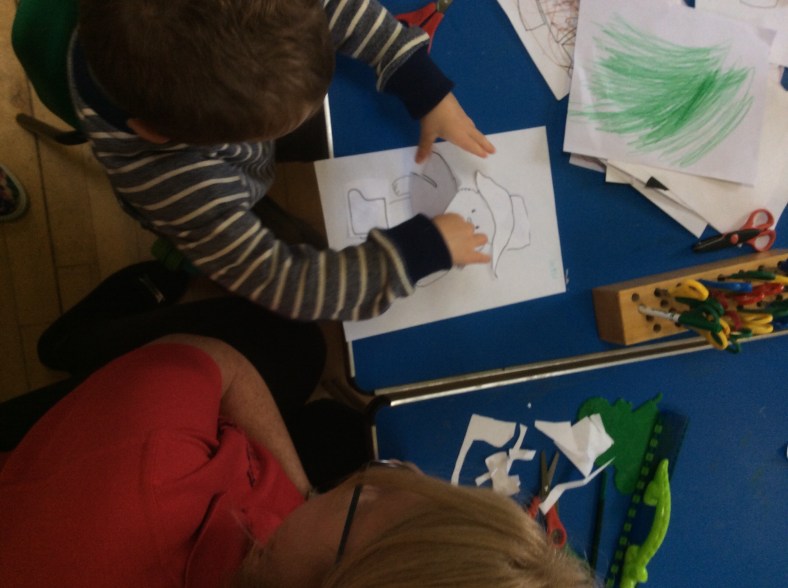 Sorry I didn’t get chance to update the blog yesterday. On Tuesday Liz came in for more music fun singing ‘sleeping bunnies’ and using the shaking eggs and rainmaker. Following our Autumn theme we were colouring and cutting out Paddington Bears outdoor clothes and sticking them. We had the new lacing letter game, which develop fine motor and also letter recognition. We had the balancing blocks out which the children ended up rearranging in a line and walking over, developing their gross motor skills.