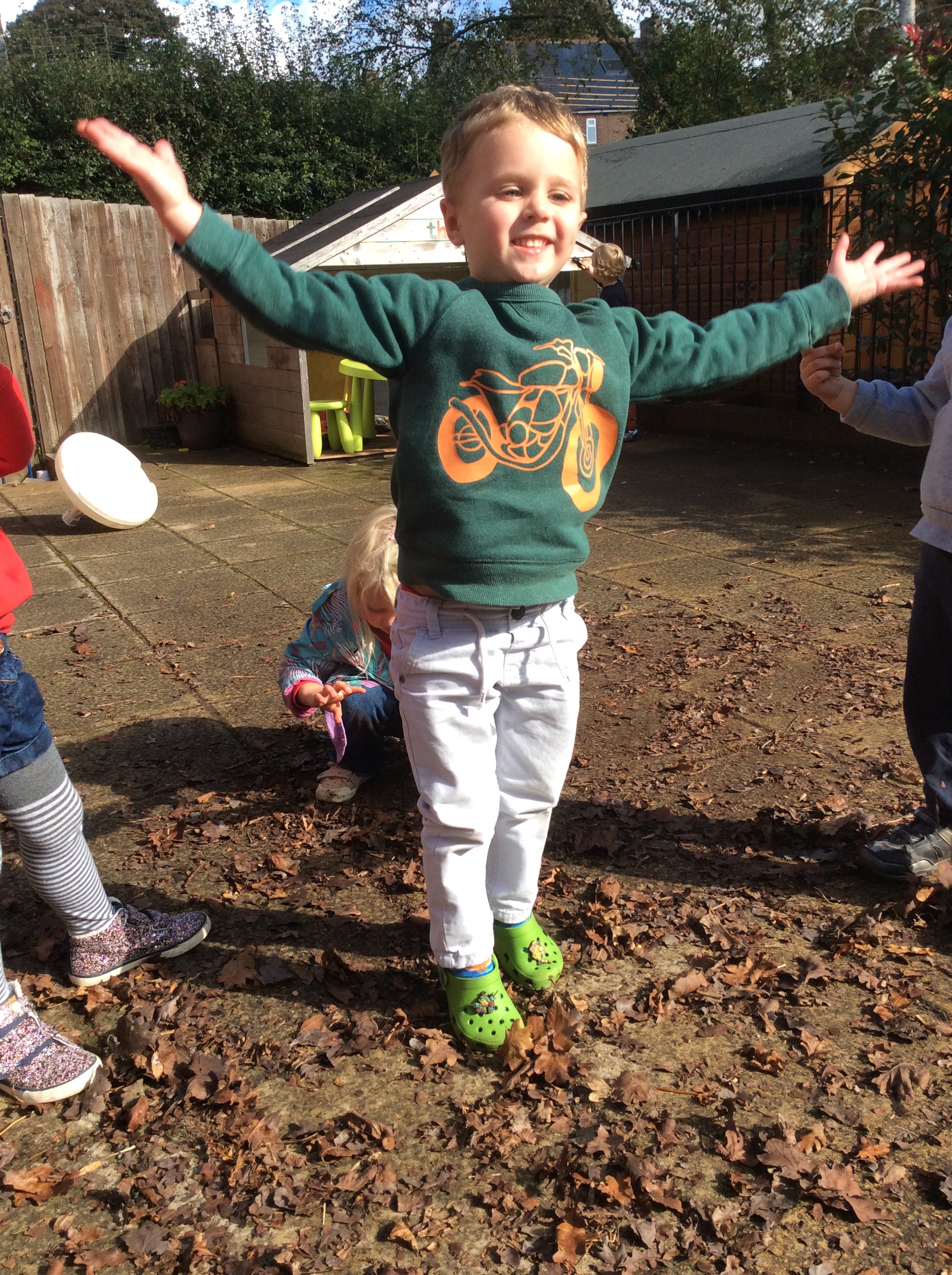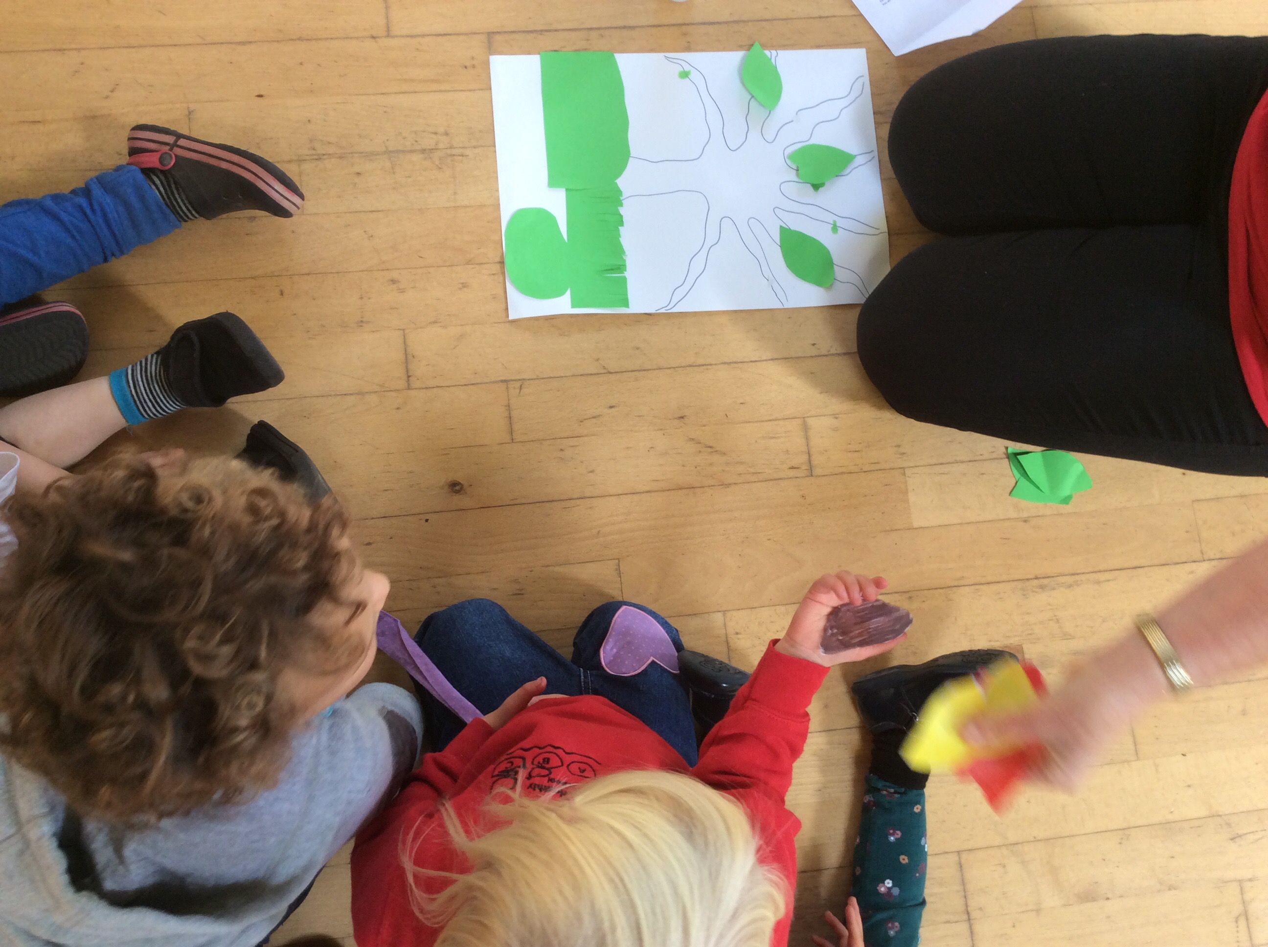 At Circle Time Issy read the children her story about squirrel and how he was sad when the leaves fell to the ground, but he learnt that they grow again in spring. The children were looking at the colours red, orange, brown and green. Also the life cycle of trees and seasons.