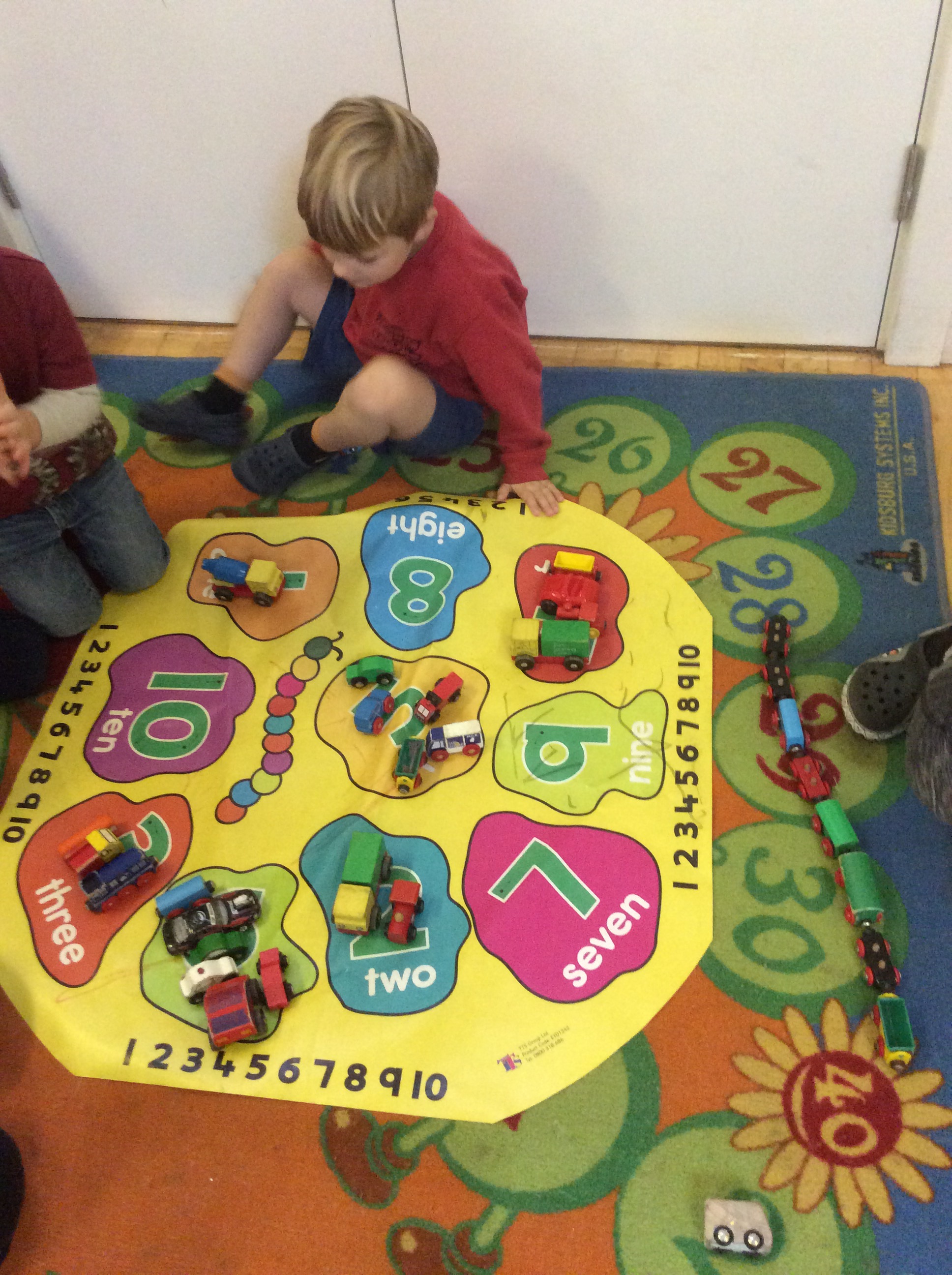 We also had the cars and trains out parking them on specific number to help the children with their number recognition. Two of the girls wanted to look at different types of butterflies, so we guided them in using the computer to find lots of images. This helps to develop the children’s understanding of technology the use of the apparatus, how it works and what it can be used for in a safe way.