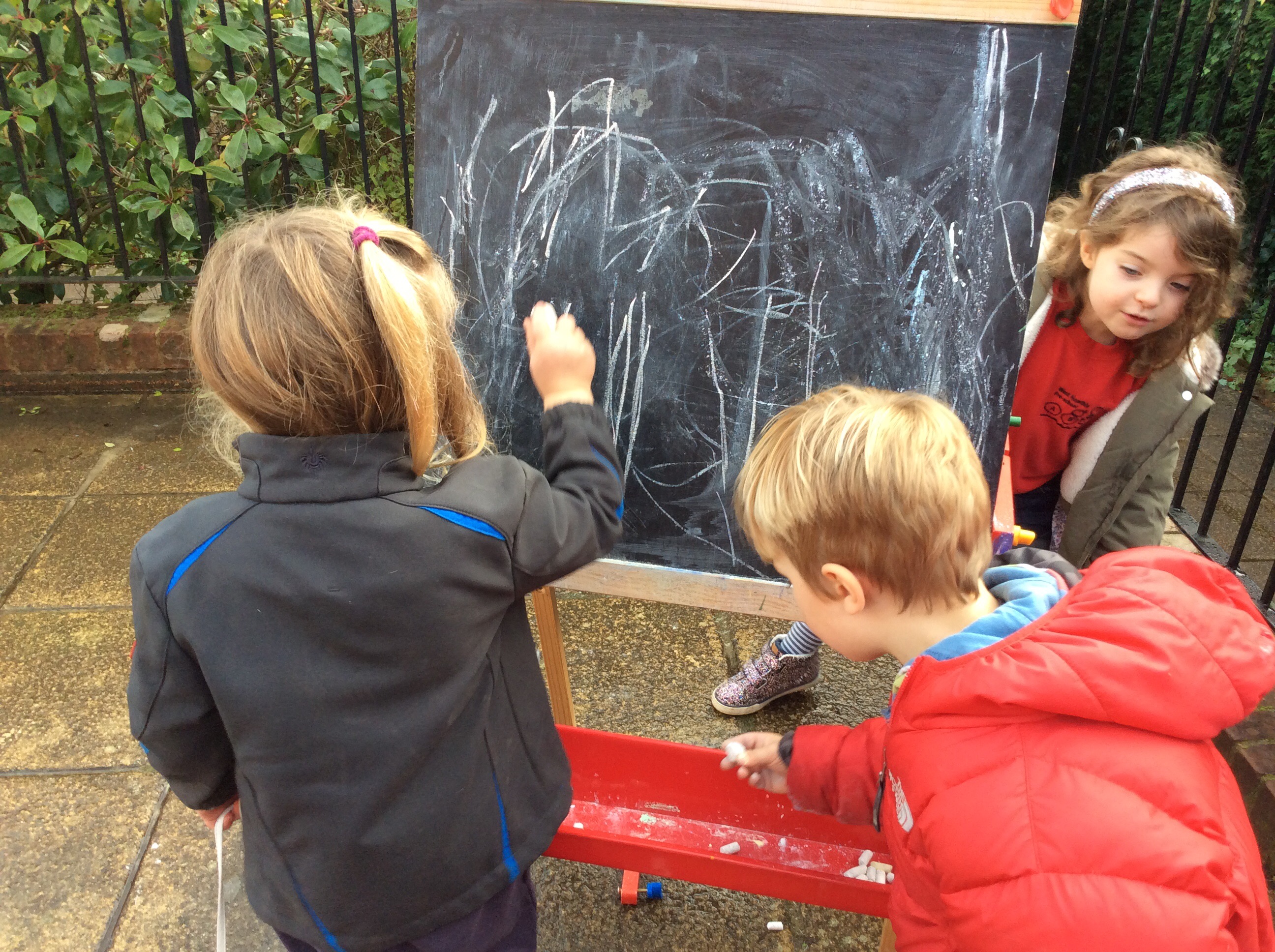 Outside the children had opportunity to use the chalk and water with paintbrushes to mark make.