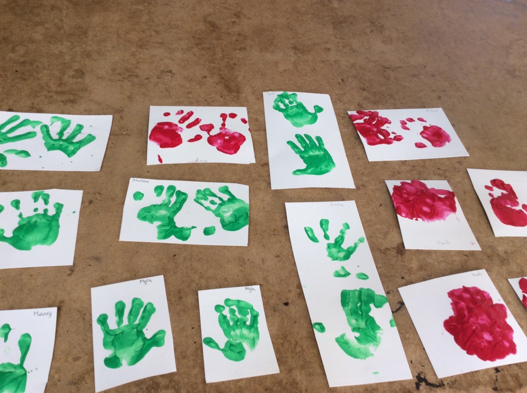 We started the morning with lots of projects to be getting on with. On the art table children were getting on with lots of their Christmas art works. We have also started to make decorations for our preschool Christmas tree, which will be at our neighbouring village of Highbrook’s Christmas Tree Festival with lots of other village organisations trees. We have started to create handprints with each child which we will decorate during the week. There is more information about the Festival on the Hoathly Hub here – http://www.hoathlyhub.info