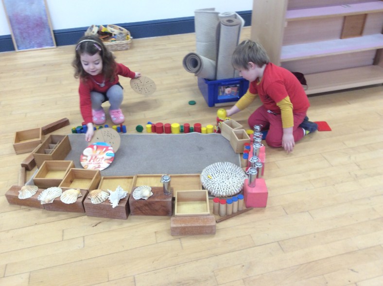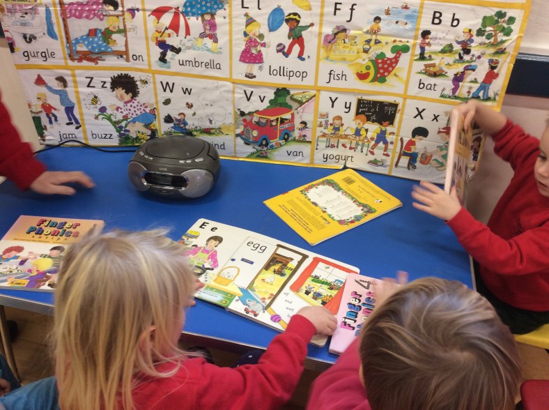 Today some of the children made a palace using the wooden cubes, shells, metal canisters and wooden storage boxes. They spent a long time creating this amazing piece. Issy made some new playdoh with some of the children counting down the microwave timer and helping to stir. Some children also spent time listening to the Jolly Phonics CD and following with the book.