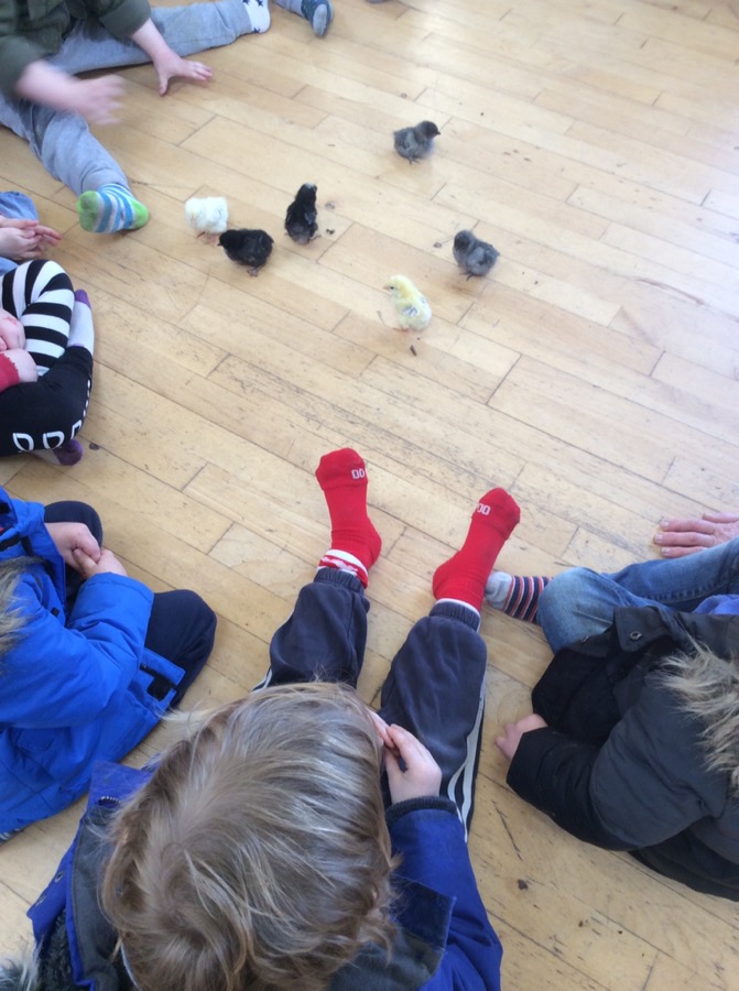 We also had a visit from five day old chicks, one of our parents kindly bought in the chicks for the children to handle. The children held them and were all very gentle with them. They also sat back and watched and listened to the sound they made and how they moved.