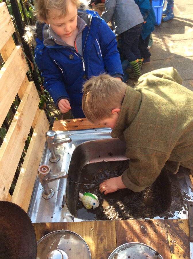 In the garden we have the new addition of a mud kitchen. The mud kitchen is a fantastic new resource for the children to experiment, explore, discover, create, describe, pour, use tools, role play, learn the importance of hand washing and have lots of fun!