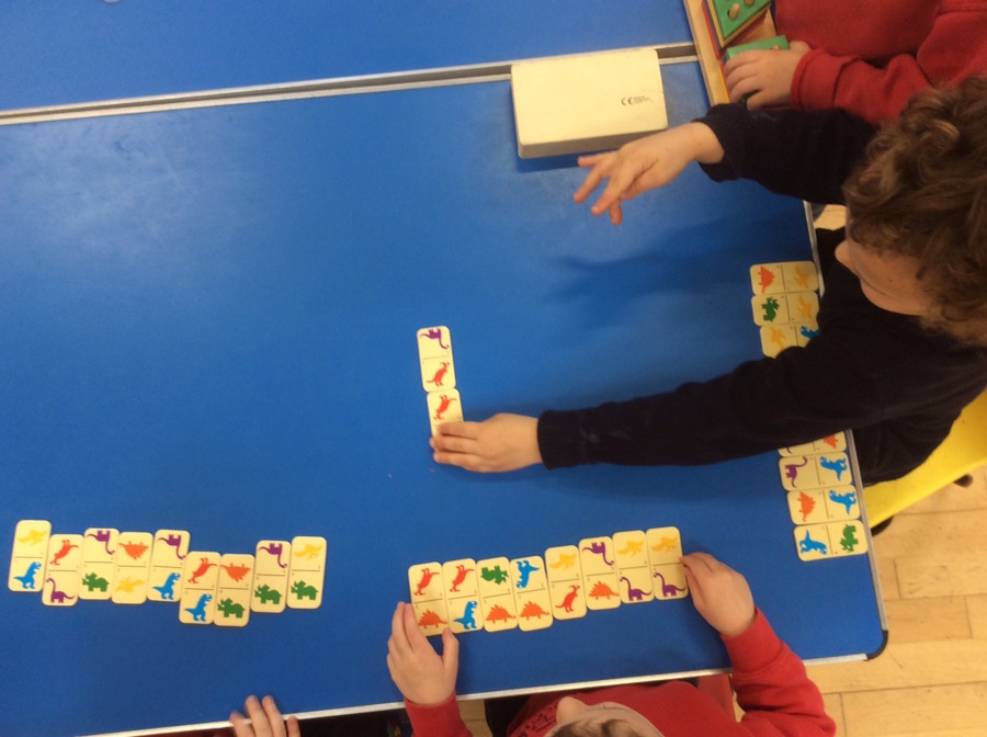 The children have been really enjoying some of our board games at the moment, one of their favourite games in dinosaur dominoes.