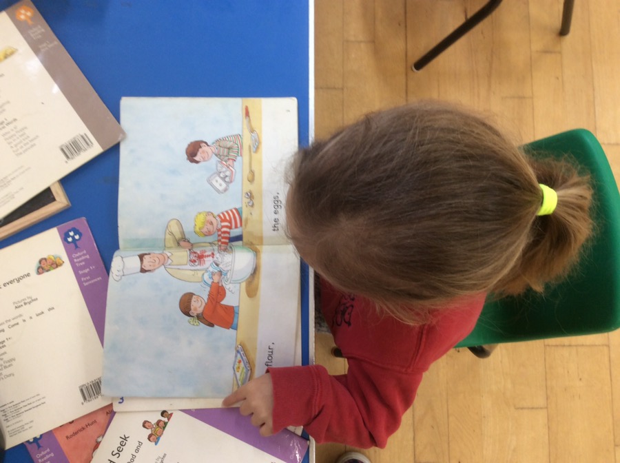 Some of the children were in the literacy area using chalks to form letters. There are always Biff and Chip books to look through in this area. Some of the children made up their own narratives looking at the pictures for reference.