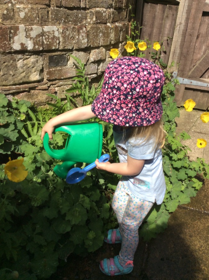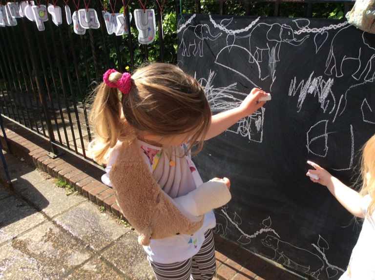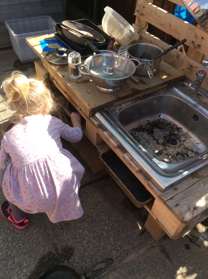 We’ve been blowing and catching bubbles, watering plants, drawing, mark making, painting with water, experimenting with water flow, baking in the outdoor kitchen and looking at animals who live in water and on land.