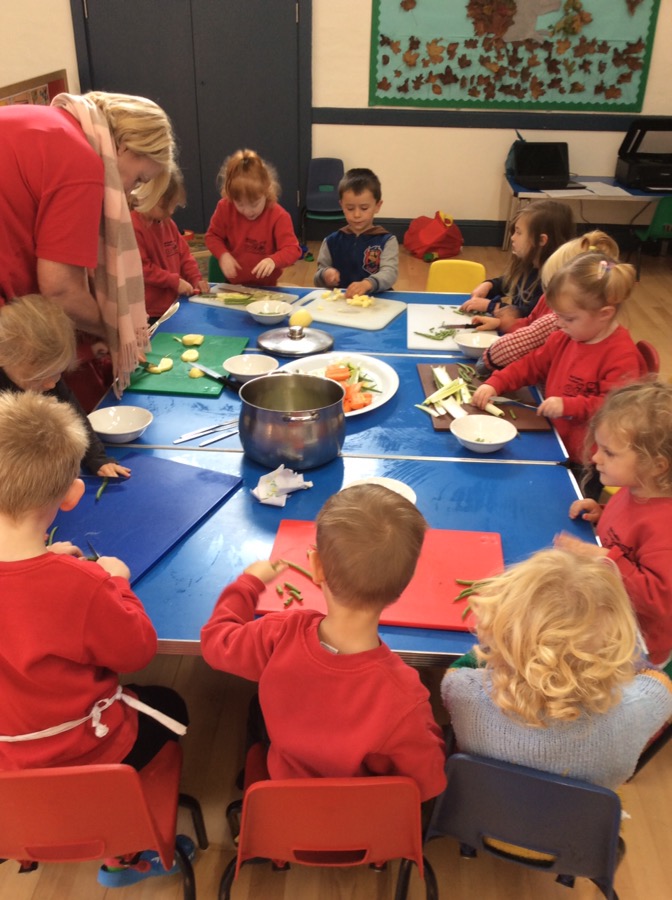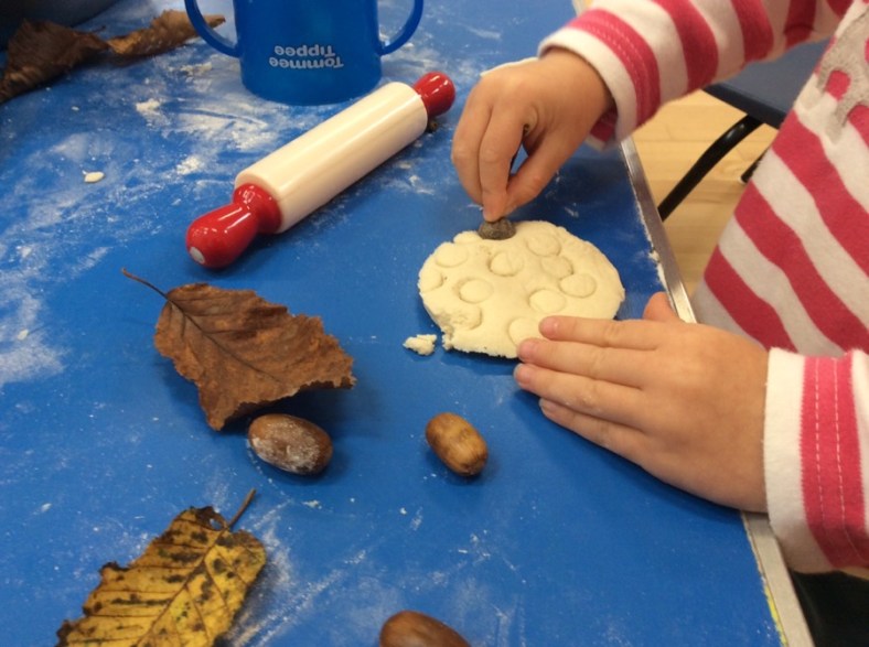 Over the last few weeks we have been out and about looking for signs of Autumn. We have collected beautifully coloured leaves, acorns and conkers to create pictures and make salt dough impressions. We have talked about Diwali, made cakes and soup. Last week we lit a fire in the garden after talking about being safe around fires. We are also looking forward to our weekly visits from a football coach.
