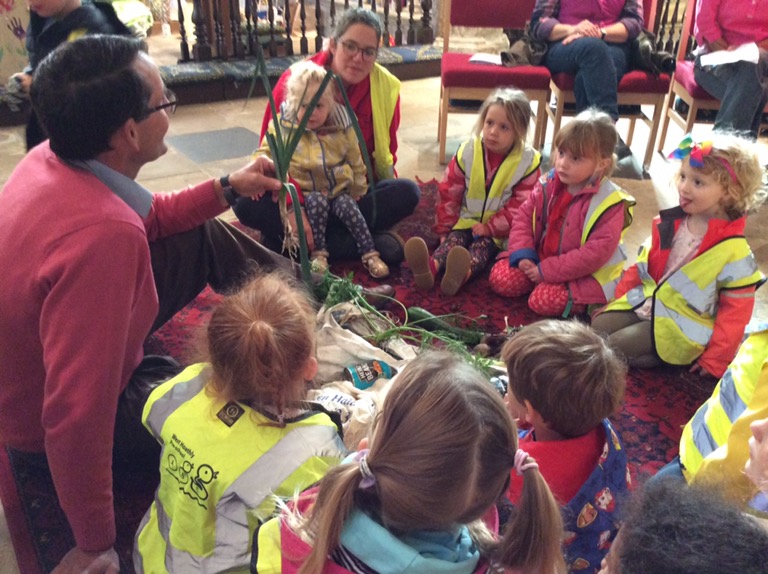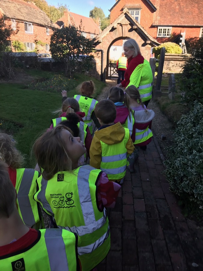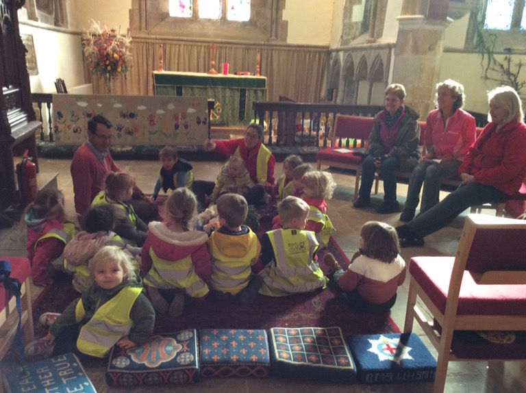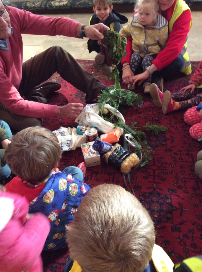 This morning we were very kindly invited to he church to go and talk about harvest. We talked about all the different food that had been donated and learnt that now the food will be given to people within the village. We all had a really fun time and sang some lovely songs and did a treasure hunt around the church for conkers.