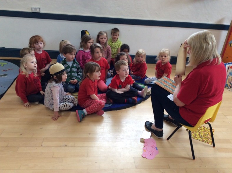 Issy used props to tell the story of the three little pigs which captivated all the children.