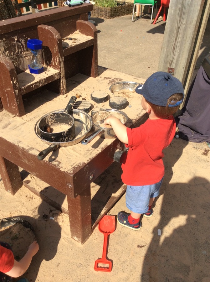 Today at school we had a brilliant time. The children were absolutely fantastic. We spent a lot of time outside playing in the sand, the role play area, on the climbing frame and on the ride ons. We played puzzles and games, did our counting songs and had stories.