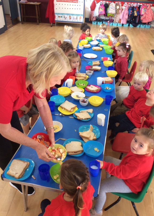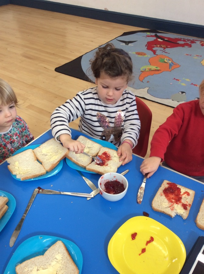 On Monday we made biscuits and went for a walk around the village. We went to the church and did wax rubbings on the different textures and then collected lots of autumn bits to bring back to pre school. On Tuesday we went to the harvest festival with the school. The children were all amazing and made us very proud! On Wednesday the children made their own sandwiches for snack time and coach Ollie came in. On Thursday we had lots of fun dressing up and looking at the hungry caterpillar.