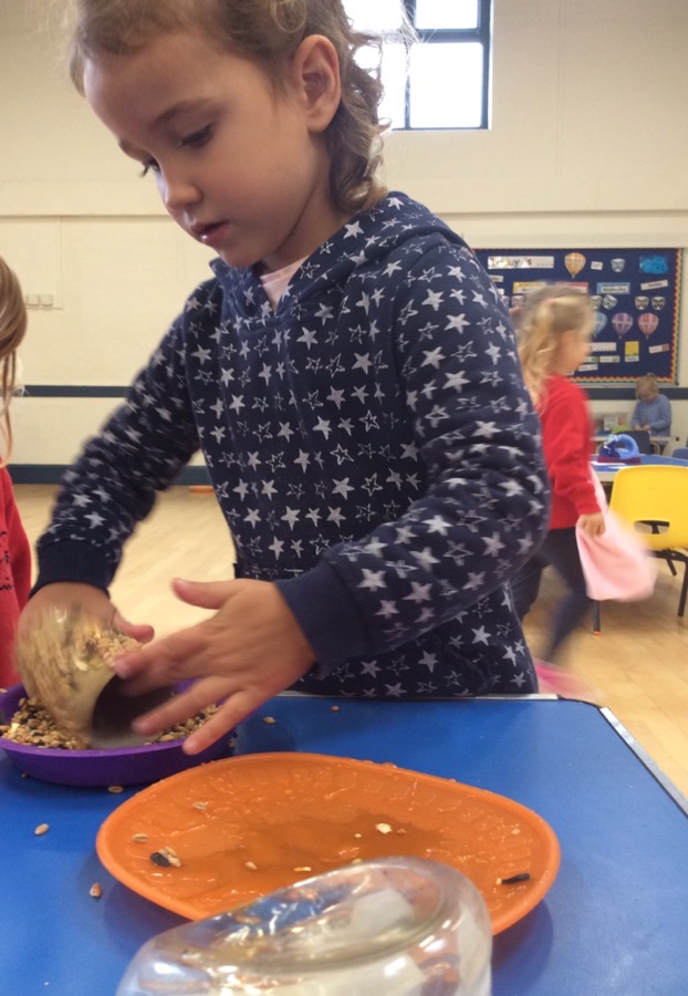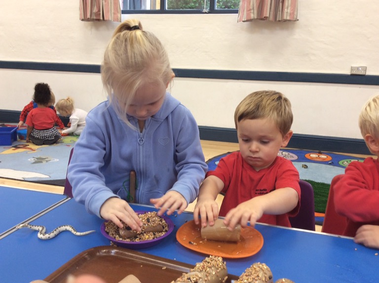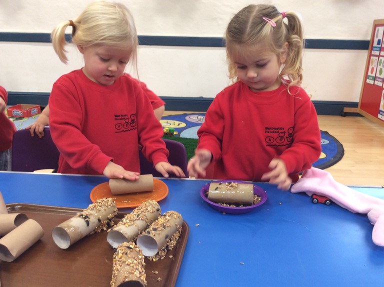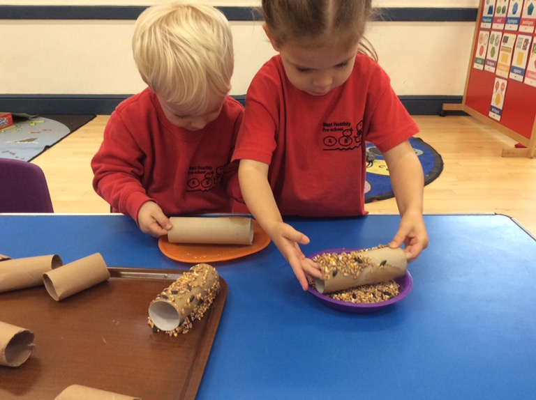 Today we joined the ‘RSPB Let Nature Sing Takeover’ bringing bird song to millions of people around the UK. At preschool we talked about birds, where they live and what they eat. Yesterday we made bird feeders in preparation for today. The children listened to the bird song on the RSPB app and used their imaginations role playing at being birds swooping and flying. If you would like to get involved and support the RSPB project please look at their Facebook page or http://www.rspb.org.uk