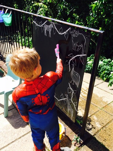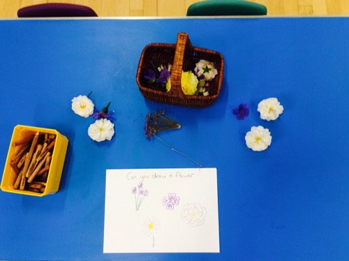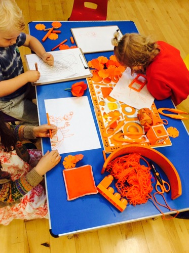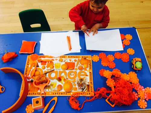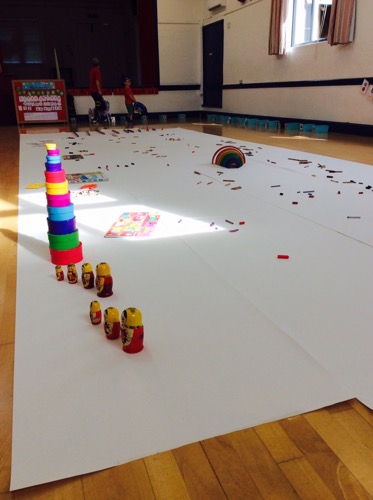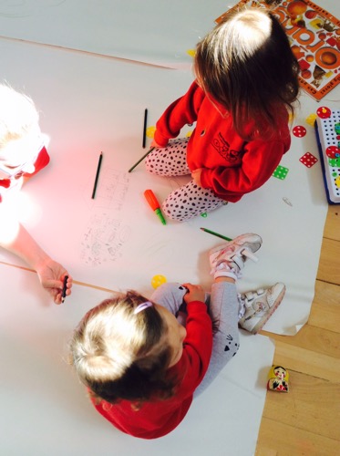 We had a ‘Big Draw’ morning inside (lots of activities outside too) with big sheets of paper looking at some mathmatical language (smaller, larger, taller, shorter etc). There were opportunities for the children to draw whatever they liked, copy from books, write their names, mark make and experiment. This was a really popular activity and the children reacted well to laying or sitting on the paper.