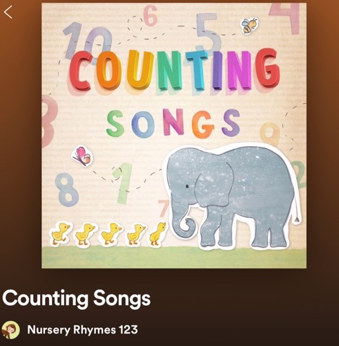 Some of our favourite counting songs are on this Spotify album. You might like to listen to them with your child.