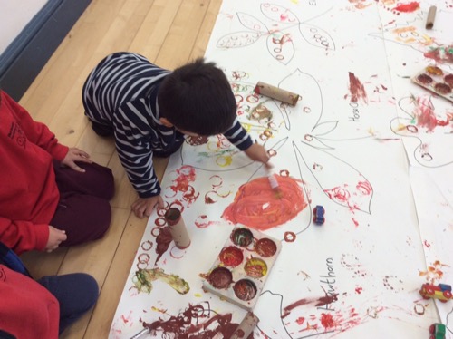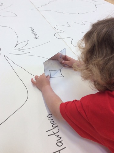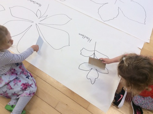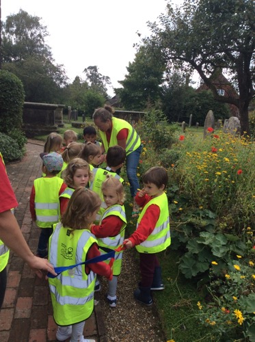 We went on two walks last week to the cricket ground to have a run around and then to the church to look at the coloured flowers and listen sounds in our environment.