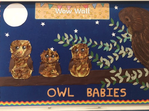 We all helped to stick leaves on our owl babies. We listened to the story and talked about who our favourite character was.